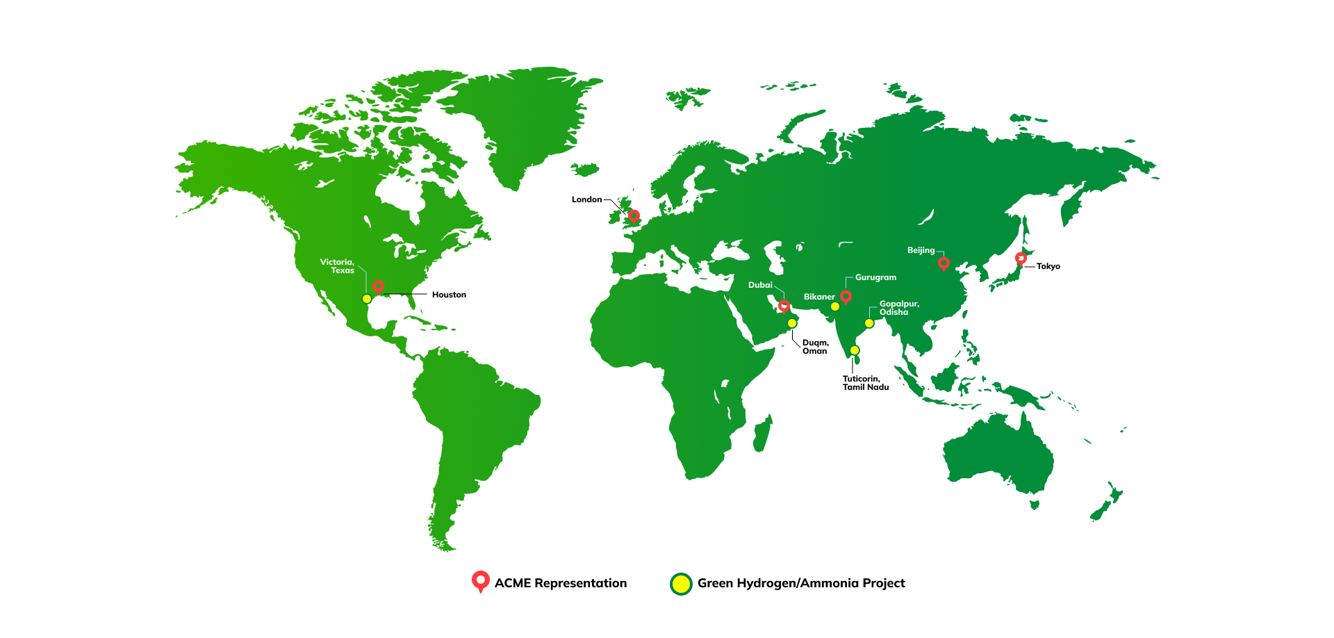ACME has entered into an agreement with Port of Victoria for a 246 acre land parcel for production of green hydrogen & its derivatives with up to 1.2 MMTPA capacity, creating jobs and investments for the local community. The project also supports the case for a new 345 kV power line and a supporting ancillary industry with a large private investment.