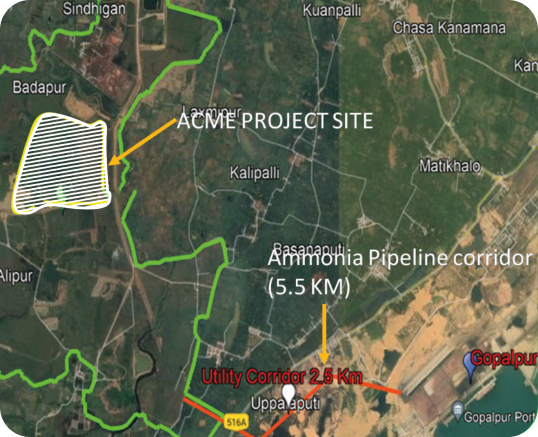 ACME Green Ammonia Project, 1.2 MMTPA in TATA SEZ, spread over 343 acres, Gopalpur, Odisha: